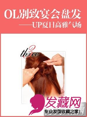 第三步后头部盘起小圆球,点亮造型高雅品味。