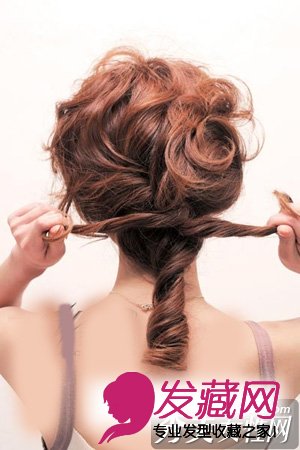 交叉后拧结发束 将左右两侧的发束互相交叉拧结成一个发束。