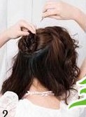 2.将上半部抓出一发束,使用扭转缠绕的方式做一基座,这样头型会比较立体。