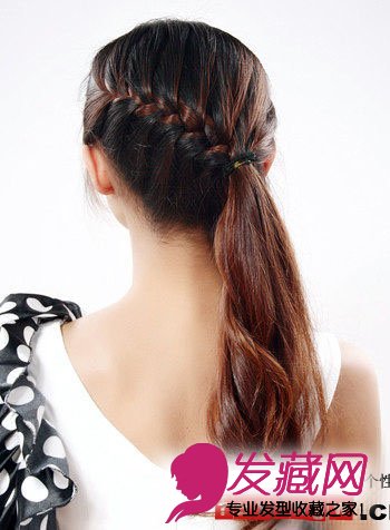 4、编到这里,可以留步直前。形成一个马尾辫发型。下面来看看这款发型佩戴发饰的效果吧。