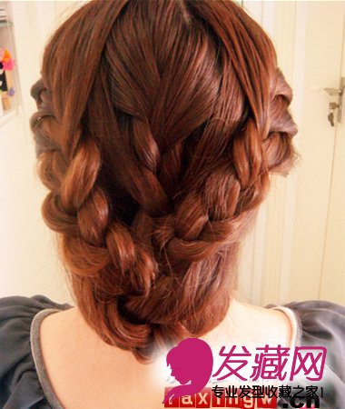 7、将编好的发尾向内弯,用黑夹子固定好。