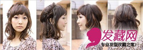 并将上半部头发包含在内,后脑勺头发抓高,蓬蓬的感觉很可爱!
