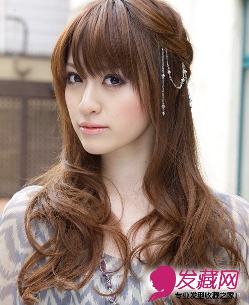 2.从首位开始趋向两侧面编发与包含在内的头发编了三个辫子。后脑勺尖端位置用发夹插入固定好发饰。