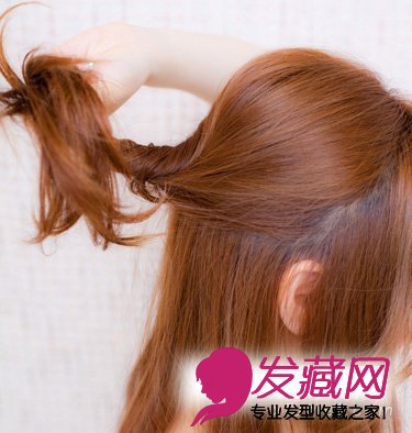 首先先留下脸庞附近的长发,从耳朵上方开始选择一部分头发,并且将其扭成一股。