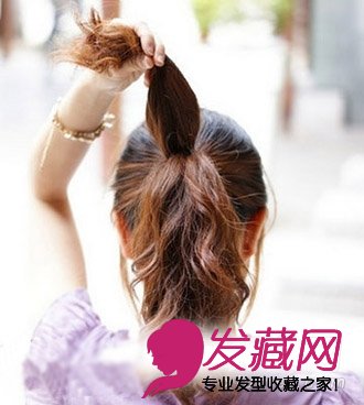 2、将马尾分成3小撮,(记得3撮的发量要差不多喔)先将一撮抓起。
