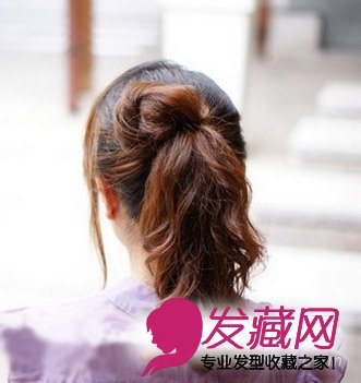3、然后将头发顺时针绕转之后呢,用小黑夹将末端固定,如图。