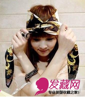 模仿日系潮妞丝巾绑头 5步DIY速成(3)