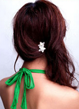 OK,五分钟不到,一个慵懒性感的发型就出炉了。如果要锦上添花,插上一个珍珠发饰,或者你喜欢别上一朵大红花也是别有一番风味的。