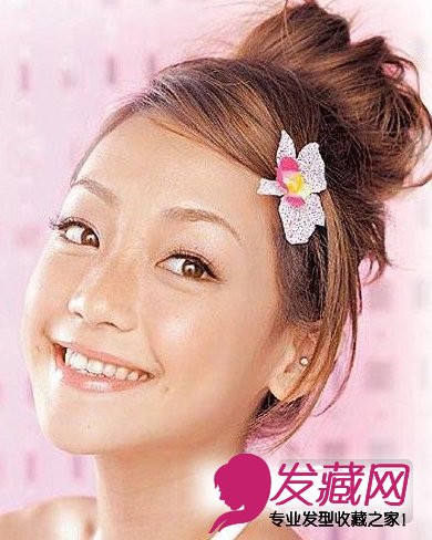 在头顶形成有如小花苞形状的发髻,清凉又可爱。