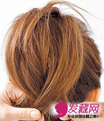 将马尾尾端绑一小段松松的三股辫,使马尾上半部的头发蓬松,且后续绕发髻时,能更容易固定。