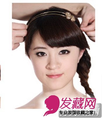 配上金色的爱心水钻发箍。 注意不需要像传统一样留出长长末梢,短
