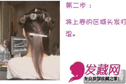 将上卷的区域头发打湿至6分湿或上少许造型品。