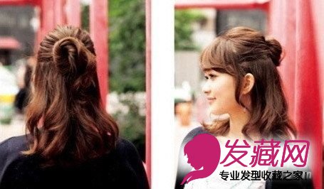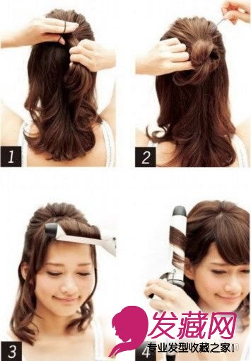 打造方法先在后面扎个发髻,用电卷棒把刘海和侧面的头发弄卷。