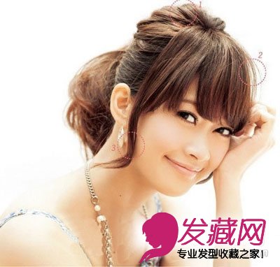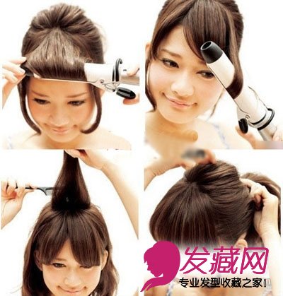 先用梳子把发根打毛,让头发看起来更蓬松,然后扎起。用电卷棒把刘海和侧面的头发卷出一定的弧度即可。