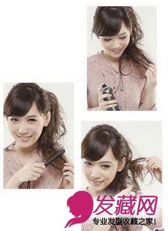 打造步骤一将头发扎成侧边马尾。然后喷上造型喷雾。
