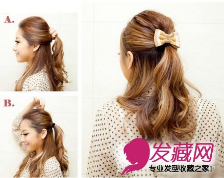 A、首先找出下巴到耳尖的延长线,将半头的马尾沿着延长线,绑在较高一点的地方。