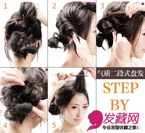 1、头发分三份,上方刘海先夹住,下方头发在右下方绑成小发髻(发尾不要拉出来的马尾),分线不需清楚。