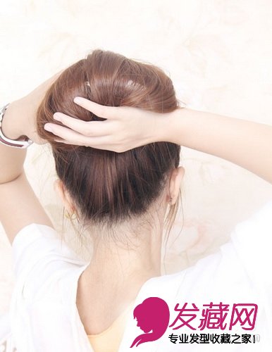 step3:将整个马尾向内折,用夹子把发尾的橡皮筋固定在马尾的橡皮筋上,这样就很牢固不会掉啦。