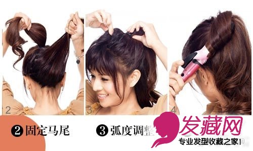 4.ÒÔµç°ôÔÚ·¢Î²ÉϾí³ö»¡¶È£¬·¢Á¿½ÏÉÙµÄÈË¿ÉÒÔÔڹ̶¨ÂíβµÄ·¢¸ù´¦¹ÎÅÔö¼ÓÂíβ·ÖÁ¿¸Ð¡£