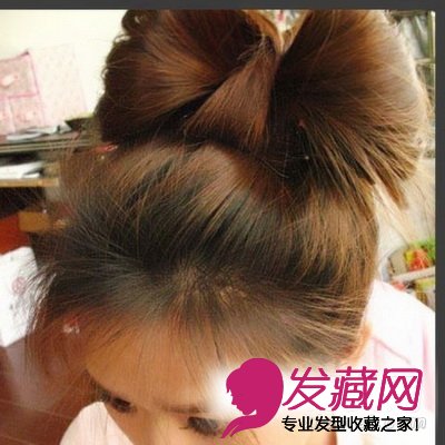 5.也就是将后面的头发通过那个花苞绕到前面来,使花苞被压成一个蝴蝶结。