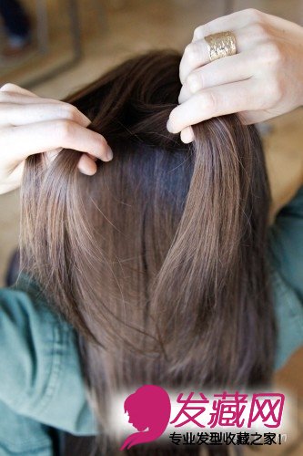 首先,将头发在右侧深侧分,然后将左侧头顶部的头发分成三股。