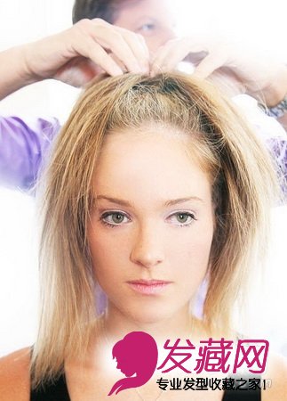 “你想让头发从底部延伸而又很好的固定在皮筋里,” Gili边慢慢地给马尾分为两侧边说到。然后他又把马尾靠着头顶位置分为四股。