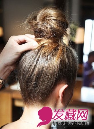 之后Gili把辫子和碎头发一起盘起形成一个圆发髻再打松发尾处。