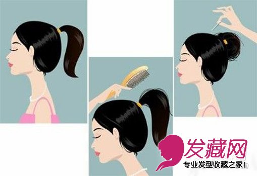 3.将打毛的部分往上推,用发尾围着它旋转,形成一个发团,用U型夹固定起来。