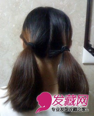 先将头发扎成两个马尾。