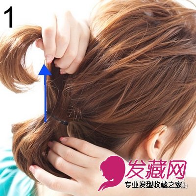 将发束绑一个低马尾,用橡皮筋固定时将尾端拉出来一半备用。