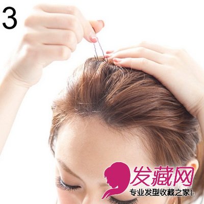 用五指代替梳子将刘海整个向后梳,再以U型夹插入固定即可。但是务必记得打造出小小的蓬松感哦。