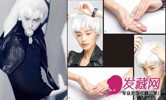 纵然Agyness Deyn现在已经嫁为人妇,改走温婉女人味路线,但是在众多粉丝甚至大众心中,她经典的蓬乱白金色短发和摇滚装扮以及带有男孩子气的倔强味道依旧根深蒂固。想要模仿AD,发色和发型的刻意蓬乱是关键。但是因为亚洲人发色的关系,尽管去发型店进行漂染处理,也很难达到理想的白金发色(大多人会呈现出金黄色——毛鳞片的本身颜色)。所以建议大家也可以把头发染成显质感又显层次的浅棕色,再用发泥抓出线条,同样帅气感十足。