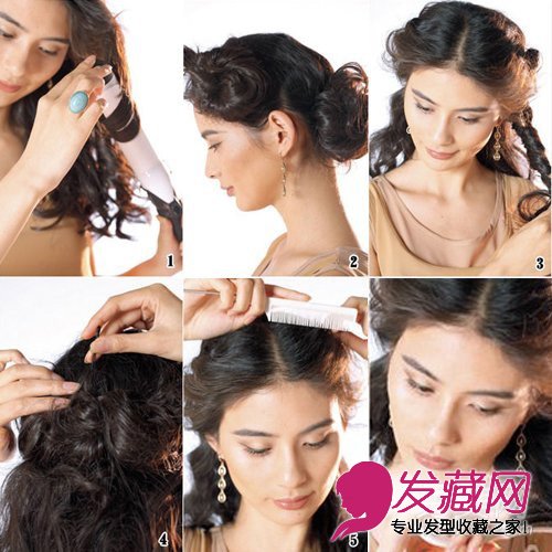 3.将前额的头发中分,取左边的头发拧成一个发卷。