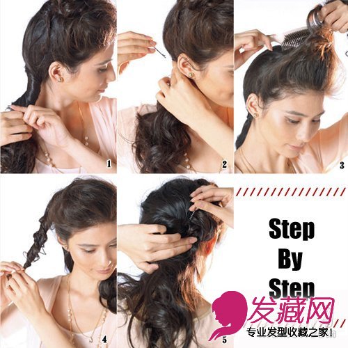 1.从耳上开始将头发分成前后两区,将后面的头发拧出一个马尾。