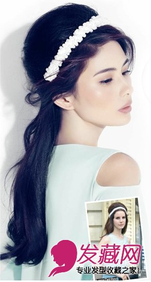 这位外国当红的女歌手Lana Del Rey,最近风头正劲,连造型也备受关注。这不,这个复古发带的造型就被疯狂跟风,没想到,复古发型配上发带,是这么的清新与和谐。你身边如果有珍珠或者镶嵌大块饰品的项链,也可以拿来做装饰,甚至几条混搭,绝对不会和别人重样!
