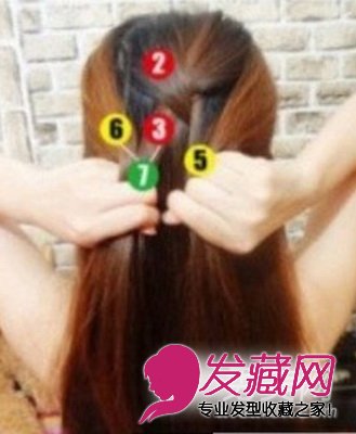 步骤六:左边的步骤也和右边的一样,取一束头发6,把它和3合在一起变成图中的7,再把7放在5上。