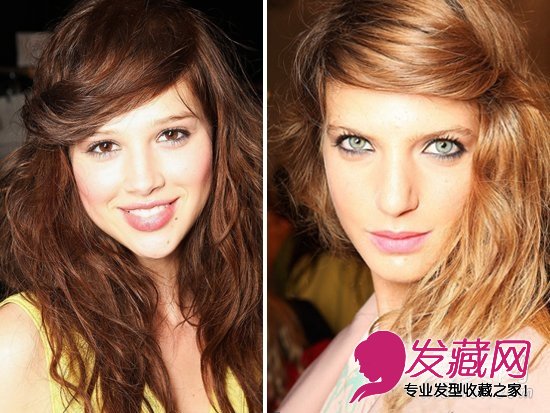 而在Jill Stuar 2013年春夏秀场上,这种圆盘帽子刘海得到进一步的演绎,增加了发量和蓬松感,更为厚重,修饰脸型的效果也能加明显更加百搭,发型师用深侧分的刘海打毛后做成圆盘横跨额前,搭配同样蓬松凌乱感的中长卷发,文艺范儿十足。