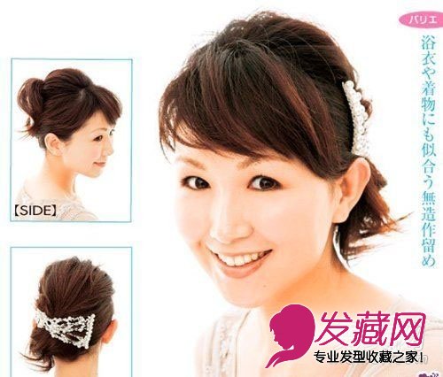 简单的扎个马尾,或是将头发盘起,利用小发饰改变单调的头发造型,让整体造型变的柔和可人。