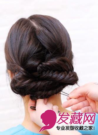 用大发夹把发尾固定隐藏到辫子里面。这一步需要用发胶。