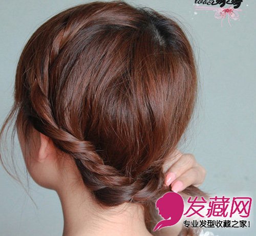 编到另一侧了先用发卡固定下,然后另一侧也用同样的手法从上往下编