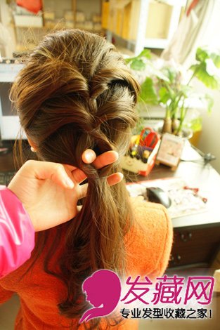 首先,把头发在脑后分成,上中下最下,四个部分。分别先取上面一层头发扎一个松松的辫子,然后从上面往里翻过来,再继续取中层的头发和刚刚翻过来的小辫一起扎起来,再次翻转,最后再把下层如上述方法一样扎好,最后再把下层的辫子和最下层的头发扎起来,不用翻转