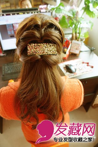 其实,也可以不要把最后的头发扎起来,松散着,直接在上面别个发夹