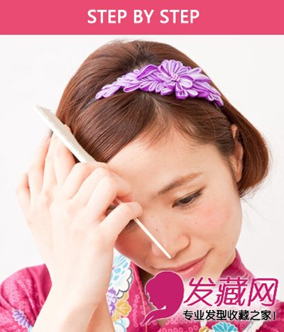 Step6:用细齿梳将前面的刘海梳整齐,如果刘海不听话,碰上啫喱水定型就好了;