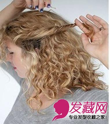 step1:如果本身是卷发的美眉可以先从前额的头发开始往头顶扭转,用发卡固定。本身