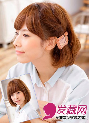 将左侧的头发编出一条发束,再戴上粉色优雅发夹,让你瞬间从单调无奇的中长发跳脱出来。