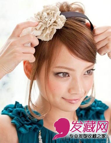 step5:再选一个好看的发箍固定在头顶,整理下两边的