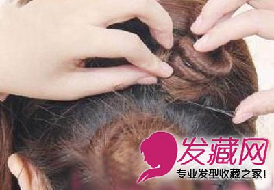 4.同样盘成发髻,用发夹夹起。