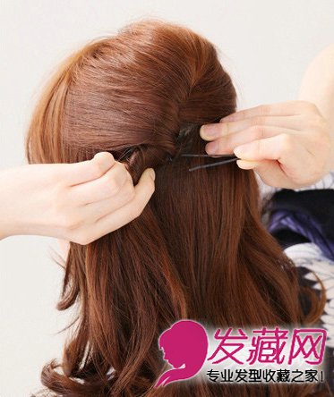 step2:把头顶的头发向右边进行扭转,让头顶的头发有个自然的蓬度,用发夹固定好头发。