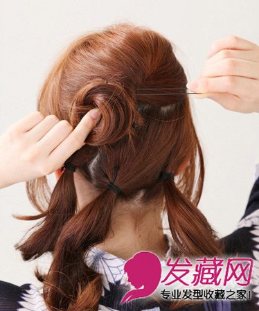 日系可爱丸子头扎法教程 diy气质侧扎发(6)