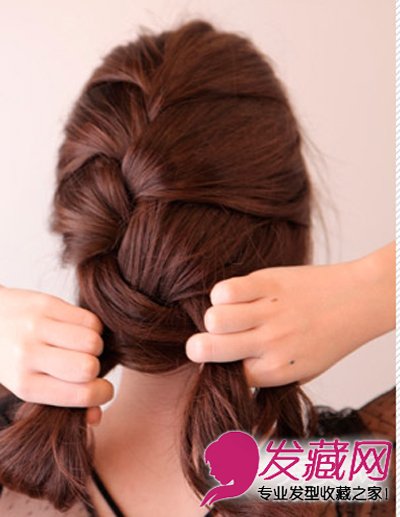 step3:编织成宽松的辫子,并不断并入下方的发束。